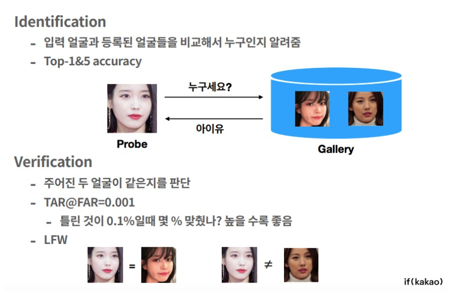 얼굴을 인식하는 두가지 방법. 1. identificaion 2. verificaiton